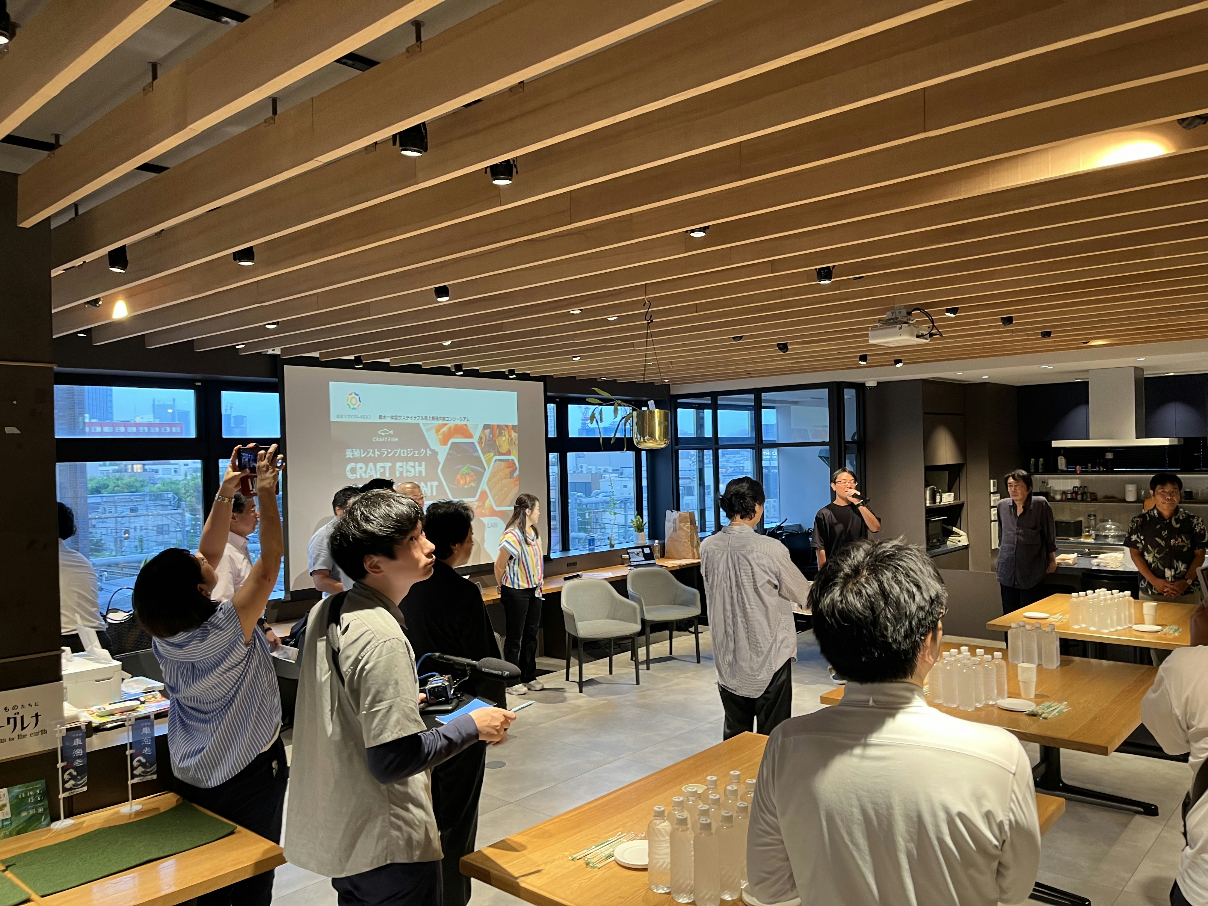 6月27日(金)に開催されたCRAFT FISH restaurantに参加しました。これは「未来の魚を、未来のかたちで味わう」をテーマに開催された、養殖レストランプロジェクトのイベントです。サステナブルな養殖技術から生まれた魚介をシェフの一皿で体感し、「『食べること』が未来の海を守るアクションになる」というイメージのもと、それぞれの水産資源をいただくことができました。